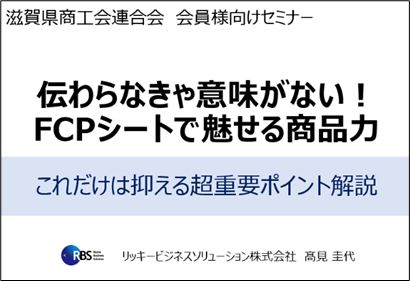 講演内容 : 『伝わらなきゃ意味がない!FCPシートで魅せる商品力』